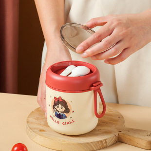 粥杯宽大口径 豆浆专用外带杯子装 德国早餐保温杯带盖勺女便携式 装