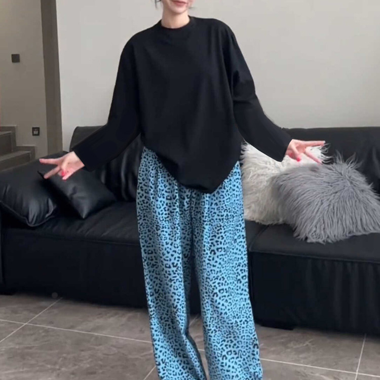 家居服豹纹套装 纯棉休闲睡衣女款 简约长袖 纯色2025年新款 春秋冬季