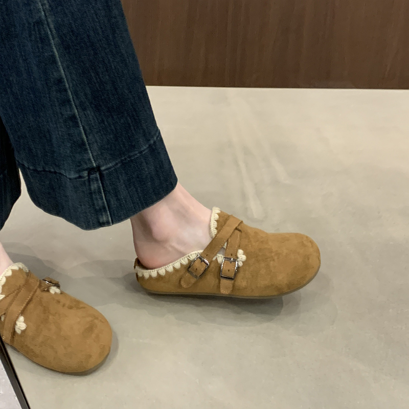 新款 2025夏季 包头外穿休闲半包复古懒人半拖X0146 女鞋 大东勃肯鞋