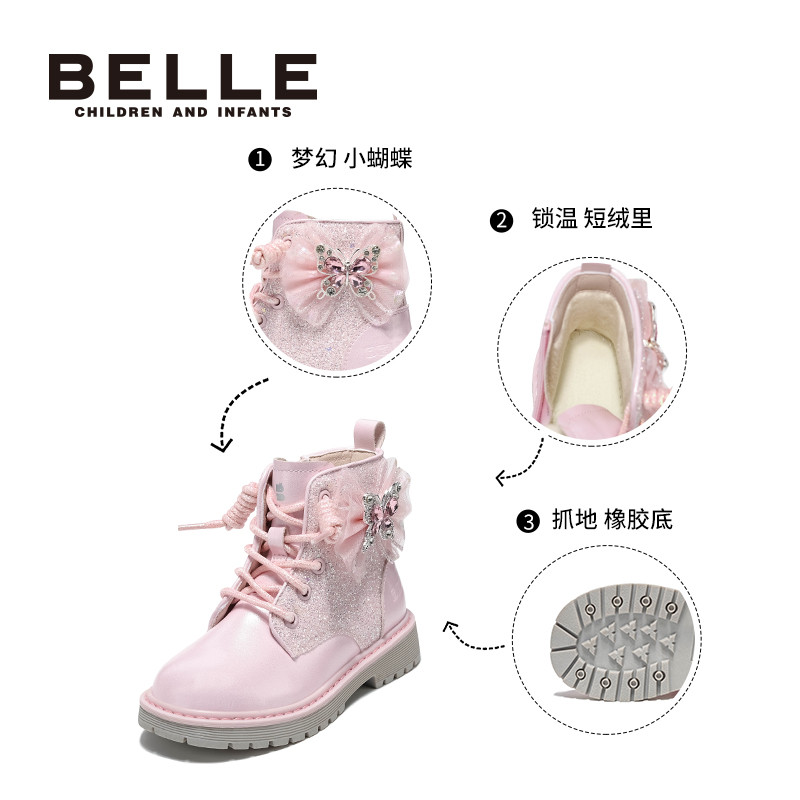 靴 加绒保暖短靴小女孩水晶公主靴儿童时装 百丽童鞋 女童马丁靴冬季