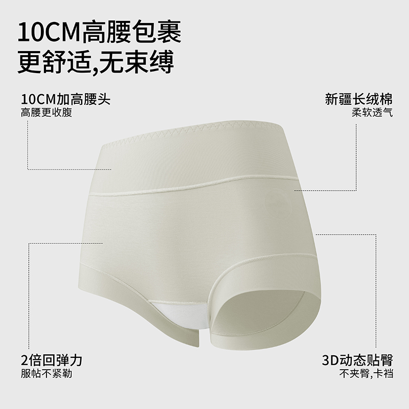内裤 有棵树女士内裤 纯棉加长裆10A抗菌透气高腰花纱平角2025新款