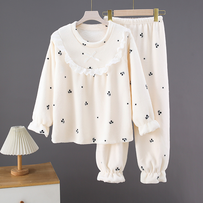 带胸垫防凸点全棉家居服套装 秋冬款 长袖 纯棉秋季 睡衣女士2025新款