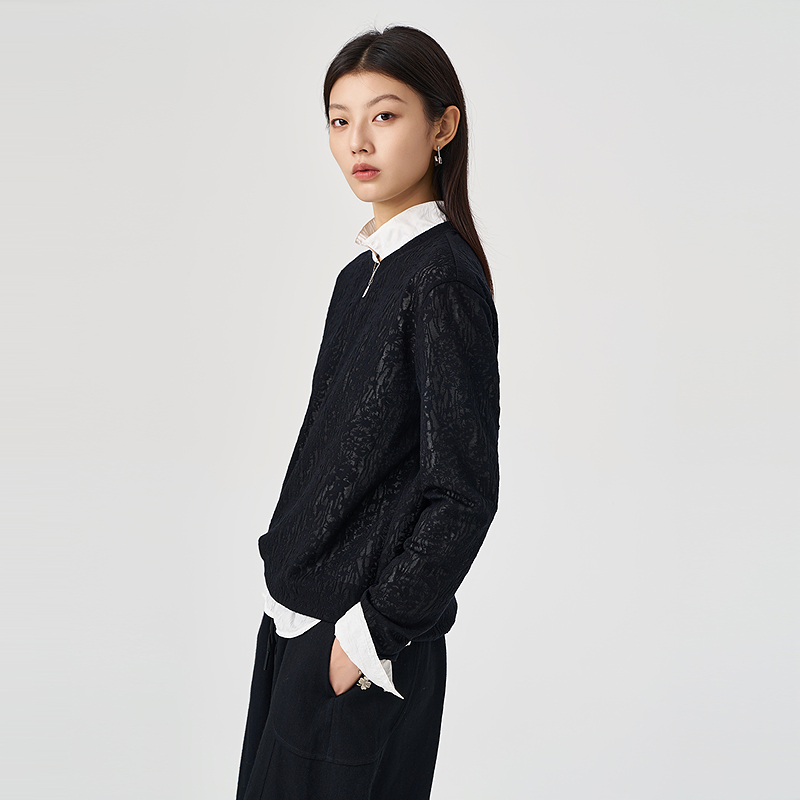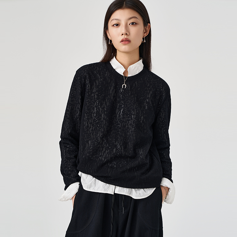 100%纯棉长袖 宽松遮肉显瘦套头外穿拼接薄卫衣B T恤上衣女秋冬韩版