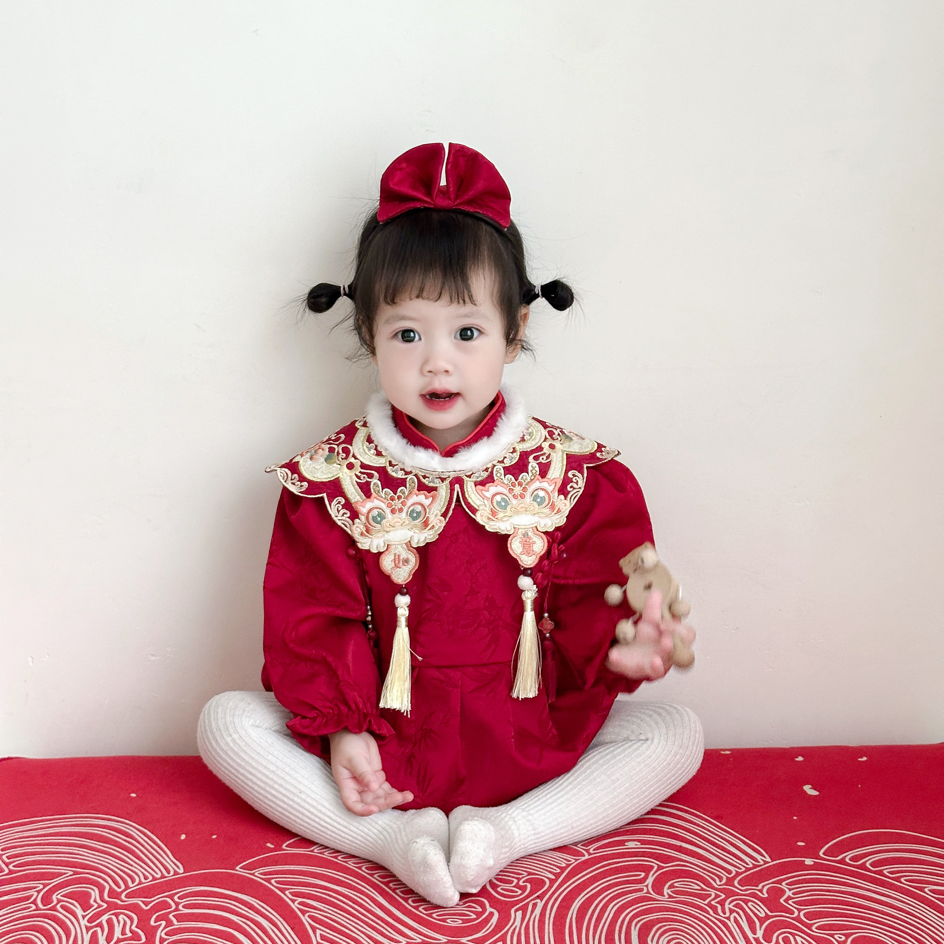 红色中式 新款 礼服百天满月宴抓周服 周岁女宝宝礼服秋冬季 2025新款