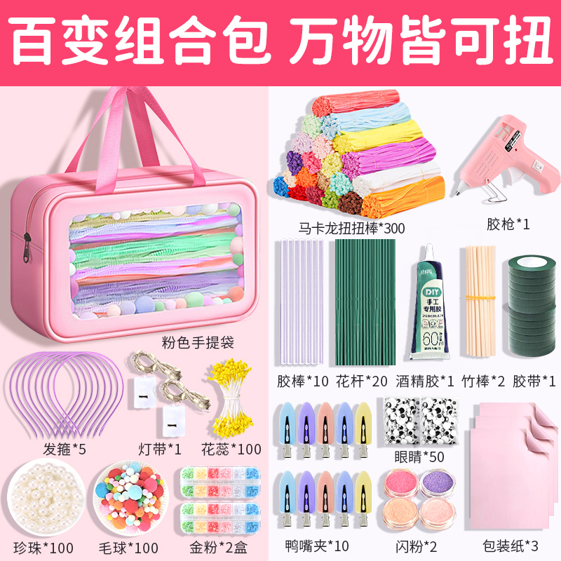 升级手提袋 材料妞妞纽纽棒加特密彩色毛根条批发便宜郁金香 扭扭棒手工diy材料包全套花束儿童自己做手工花