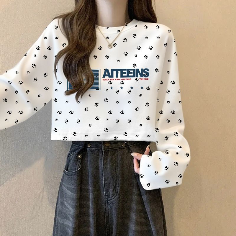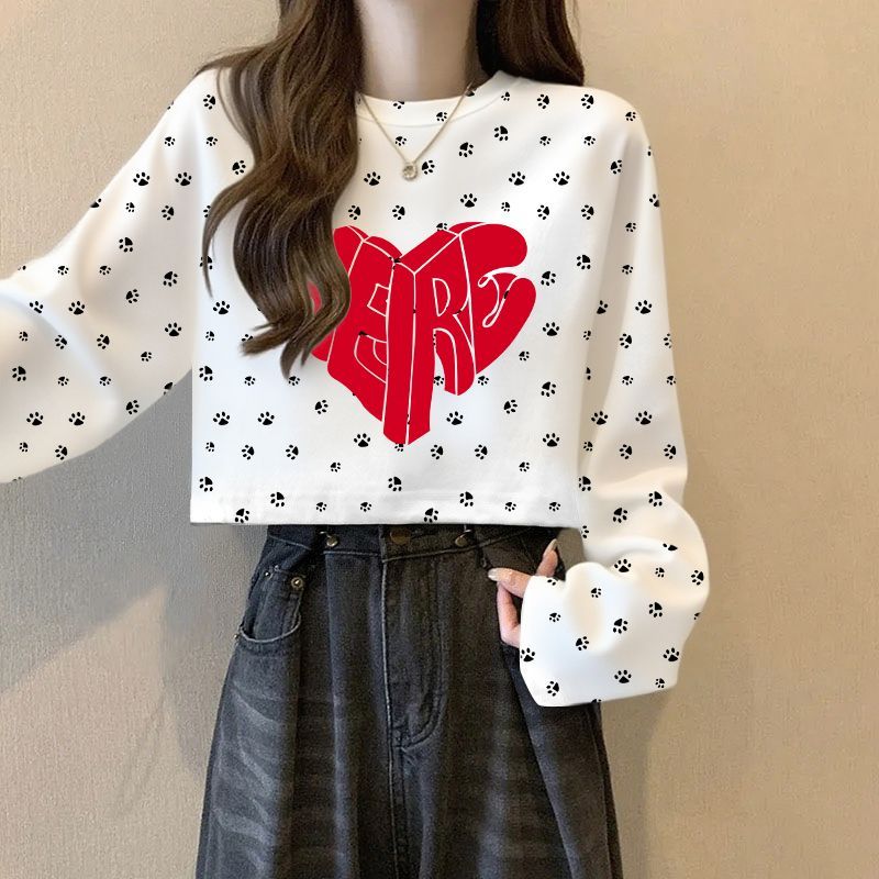 女士好看长袖 秋季 t恤 女宽松纯棉上衣2025新款 LBP真维斯白色打底衫
