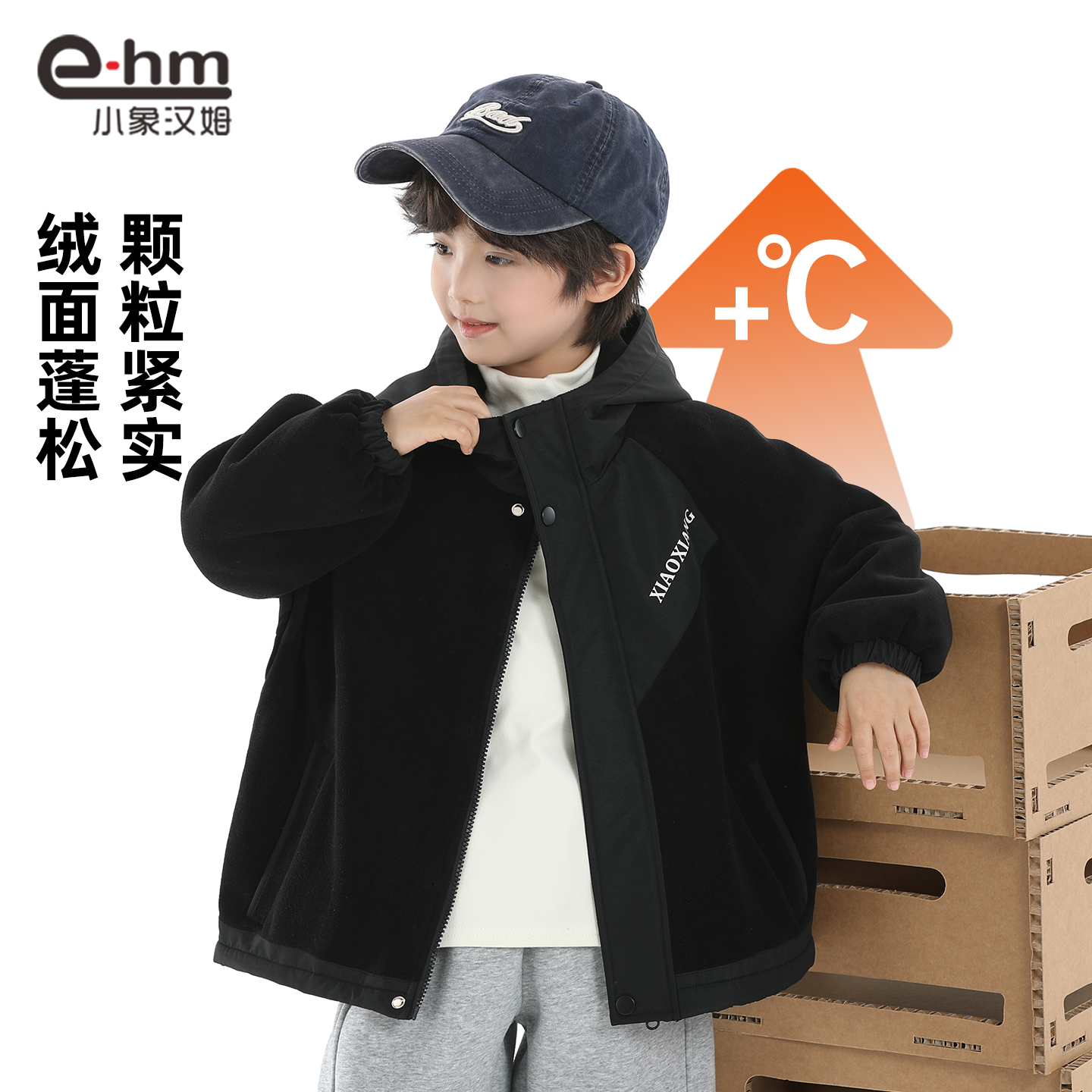 上衣洋气 儿童奥利绒外套秋冬季 小象汉姆童装 男童外套连帽2025新款