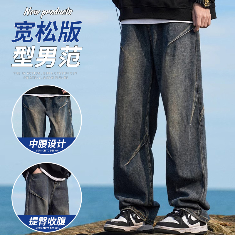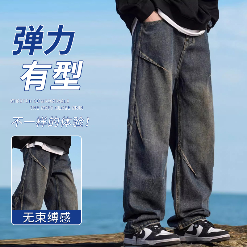 牛仔裤 潮牌直筒宽松男生阔腿休闲长裤 男士 2025新款 子 秋季 罗蒙美式