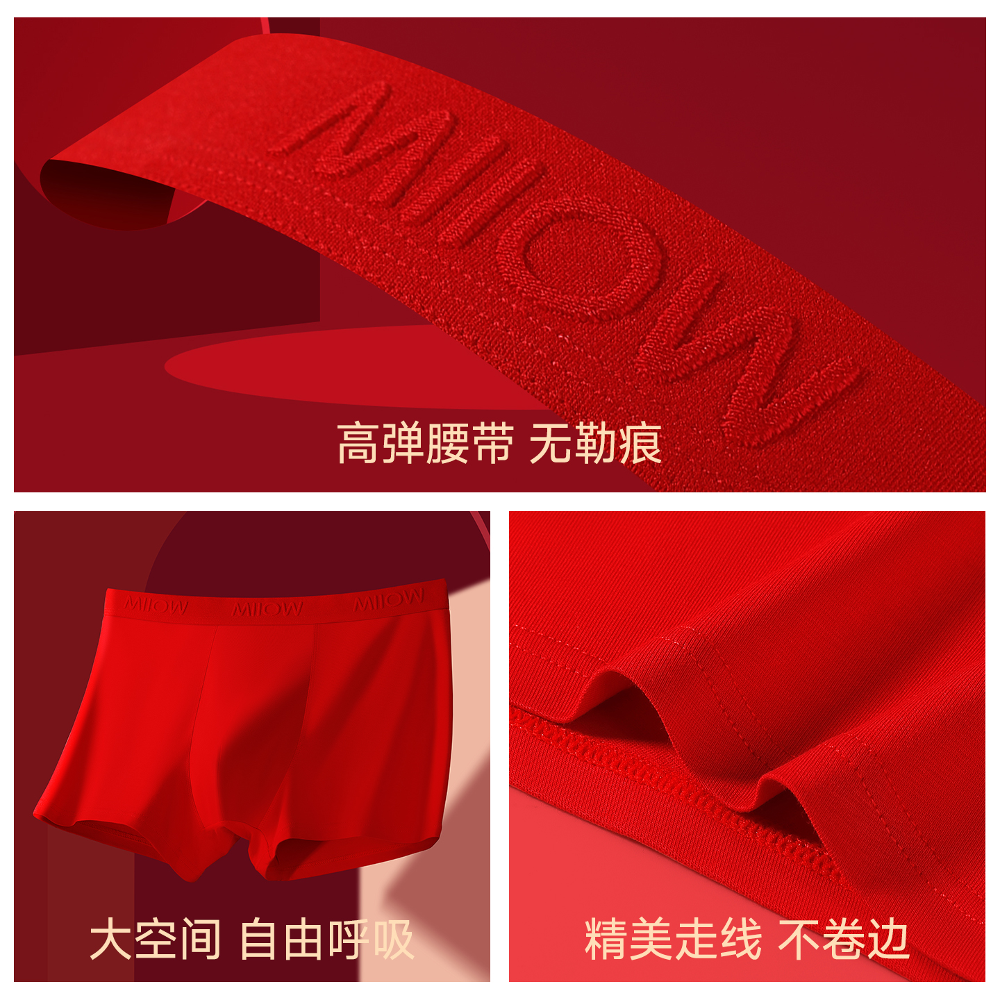 内裤 四角平角裤 红色2025新款 男款 蛇年礼物 纯棉短裤 猫人本命年男士
