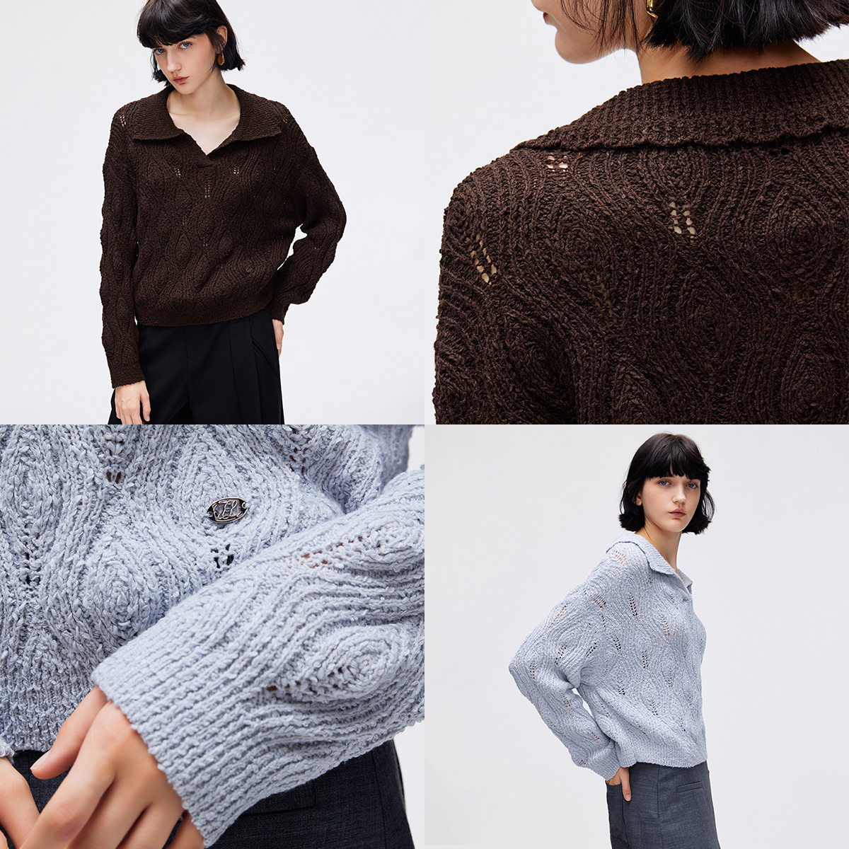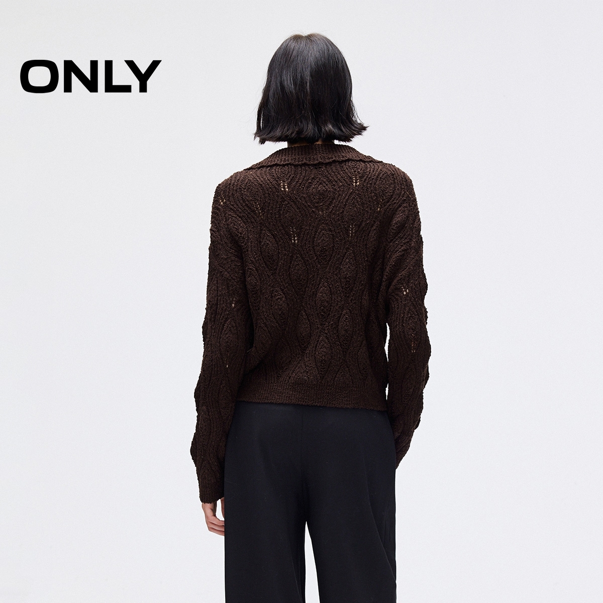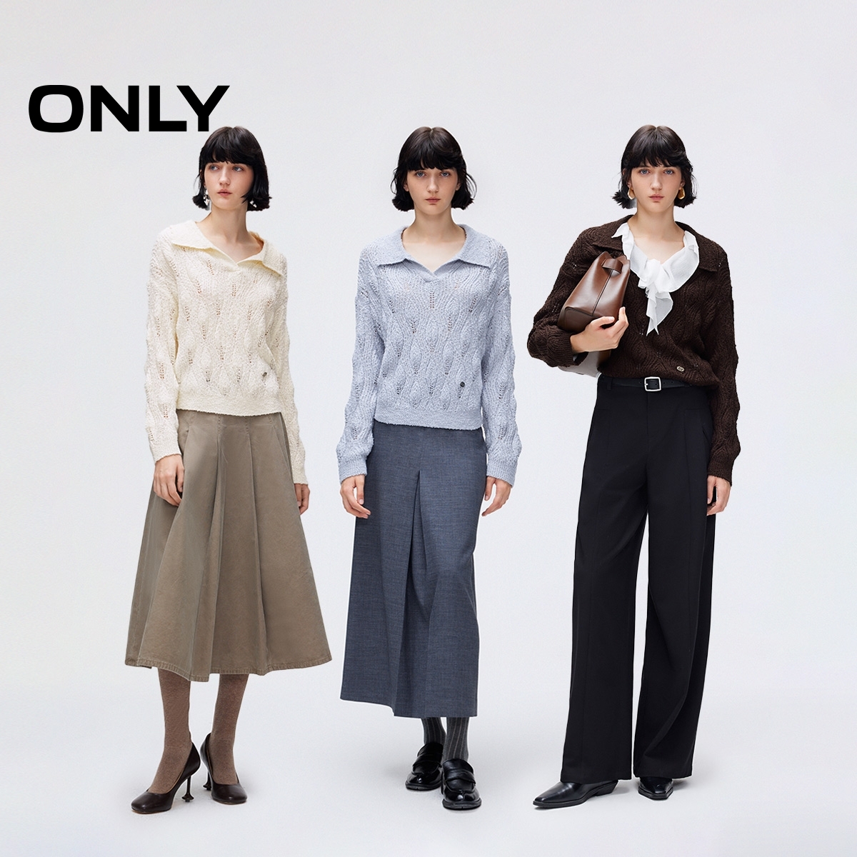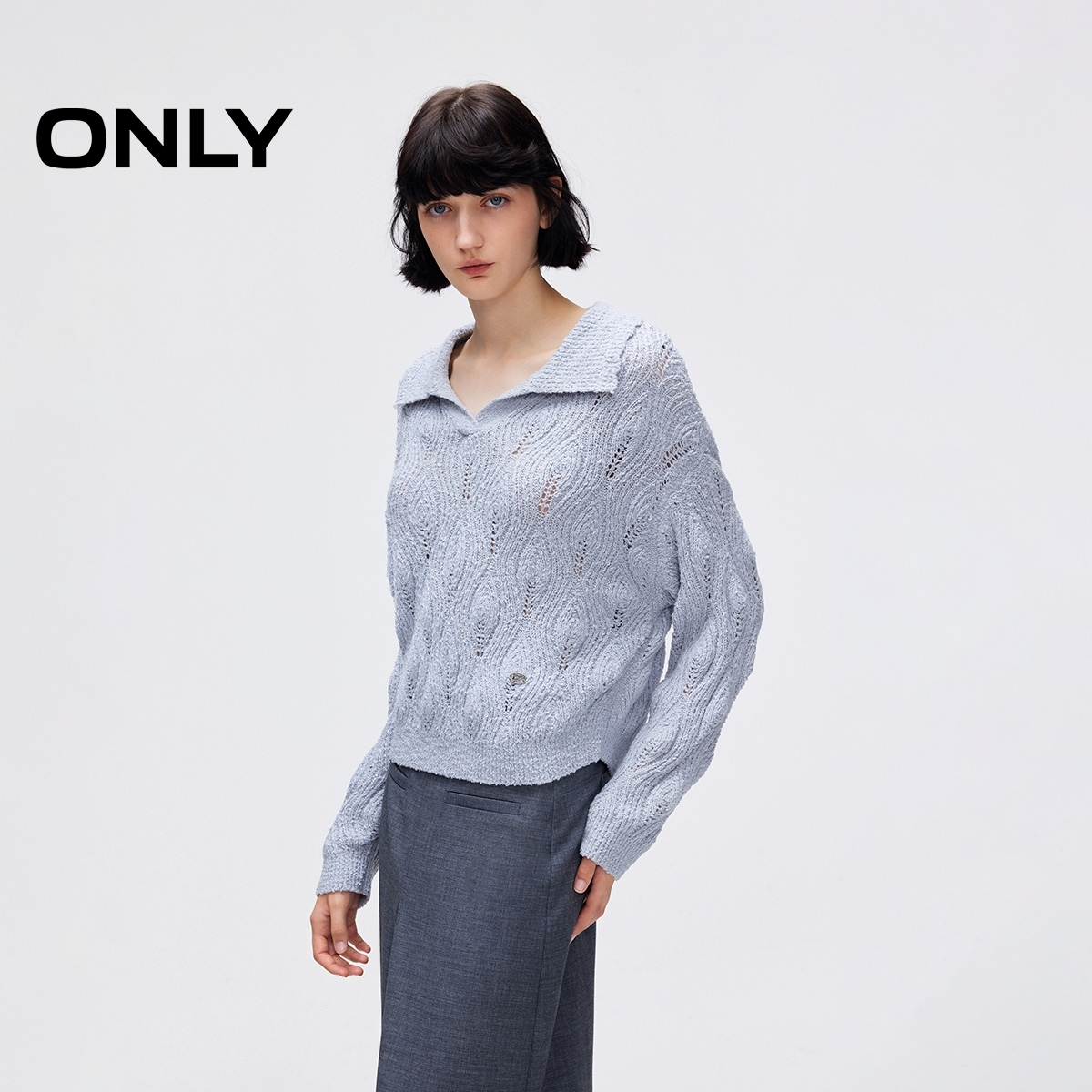 女 老钱风polo立体绞花镂空落肩慵懒毛衣针织衫 ONLY2025秋季 新款