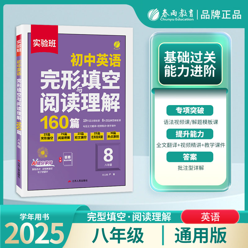 2026实验班初中英语完形填空与阅读理解160篇 七年级八年级九年级中考真题专项训练初一初二初三热考时文语法专项训练习册春雨