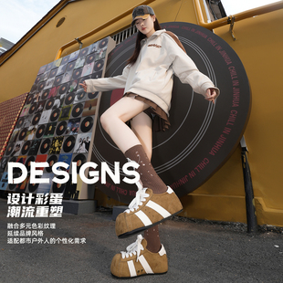 革面保暖厚底时尚 运动鞋 平底鞋 板鞋 子 女款 秋季 女鞋 特步男鞋 休闲鞋
