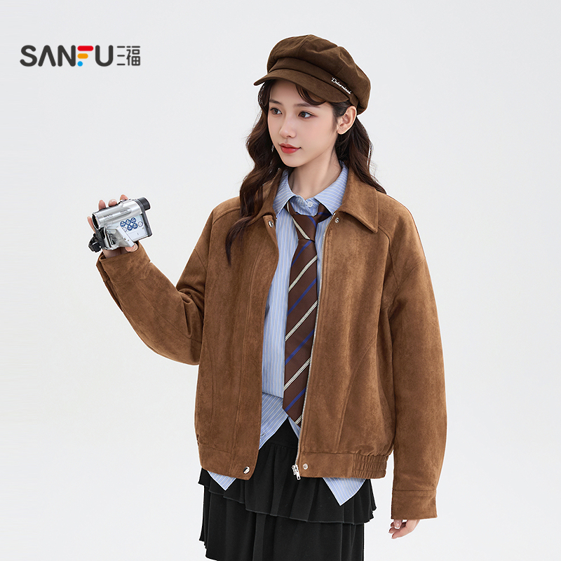 韩系早秋穿搭麂皮绒间棉外套保暖夹克女装 三福厚外套2025新款 冬季