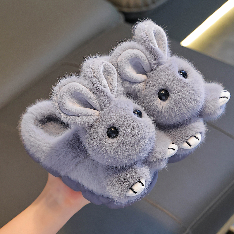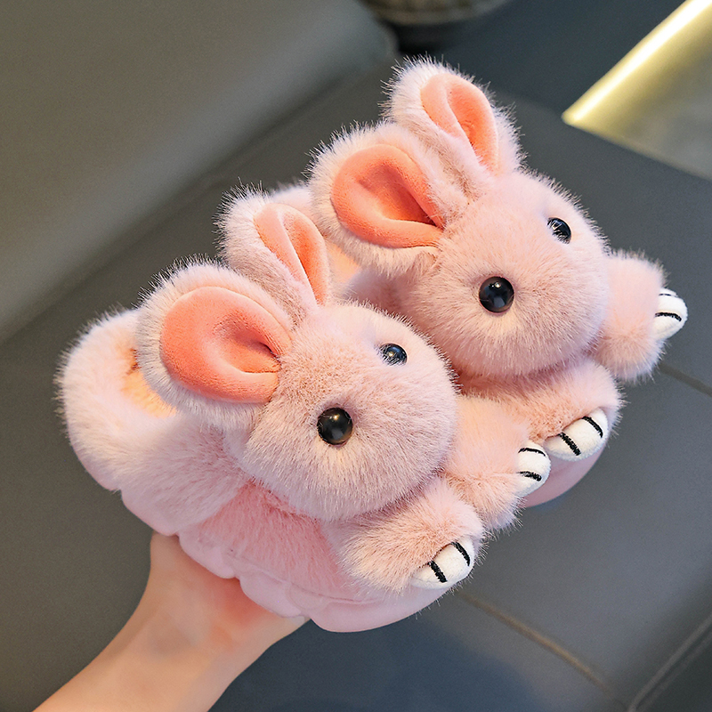 男 卡通可爱兔子防滑室内居家亲子宝宝毛毛拖鞋 儿童棉拖鞋 女童冬季
