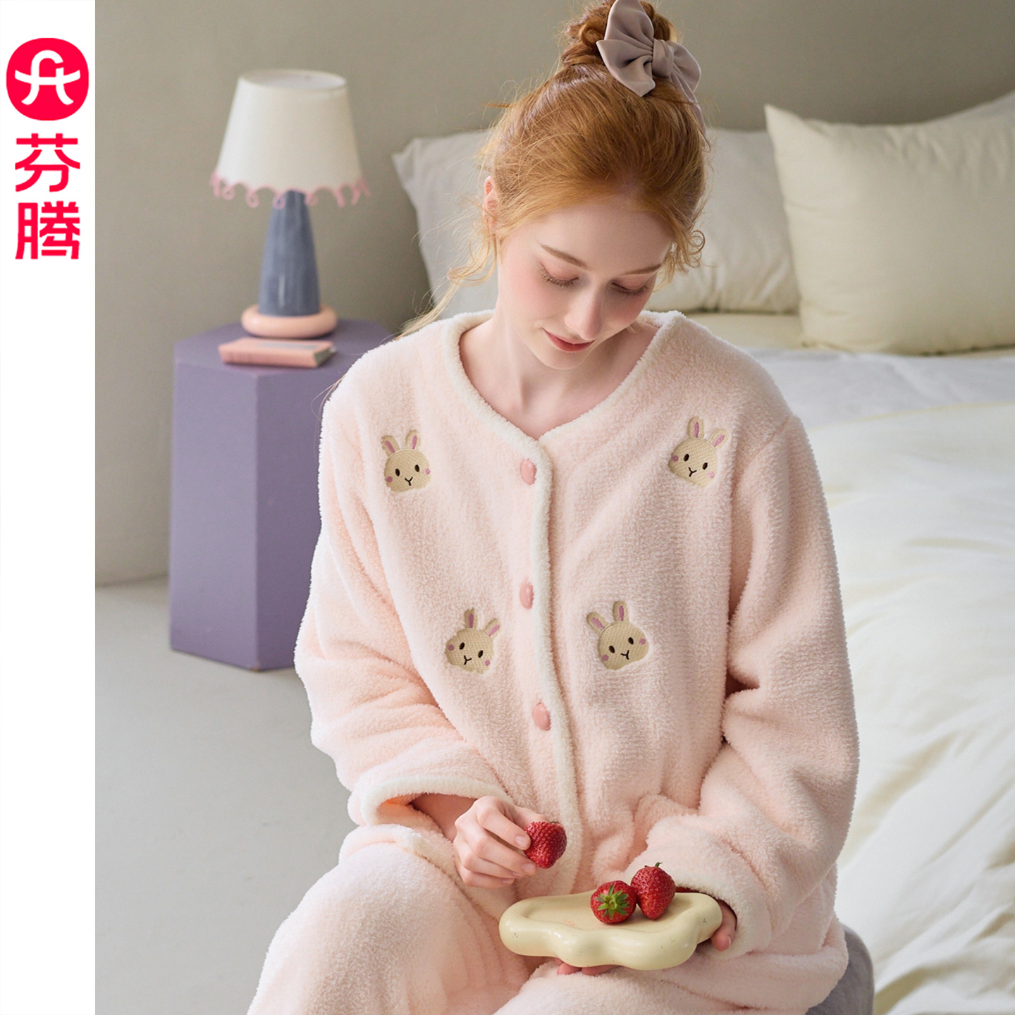芬腾珊瑚绒睡衣女秋冬加绒加厚卡通可爱兔子外穿家居服套装 2025年