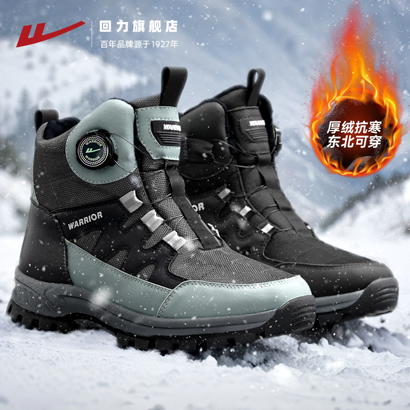 防泼水保暖登山马丁靴加绒加厚雪地靴 新款 回力男鞋 高帮东北大棉鞋