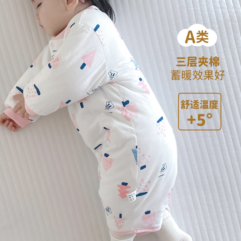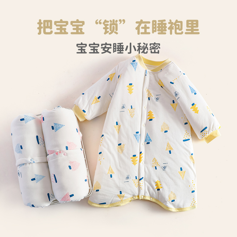 婴儿睡袍秋冬款 加厚宝宝睡衣浴袍防踢保暖夹棉连体衣儿童棉服睡袋