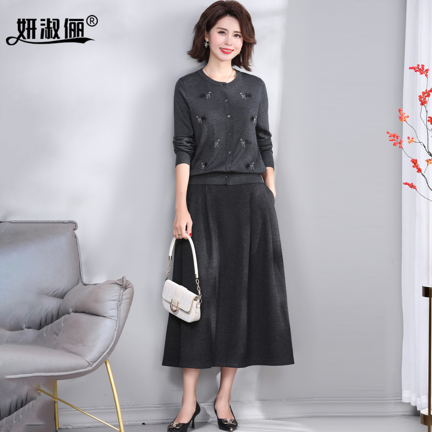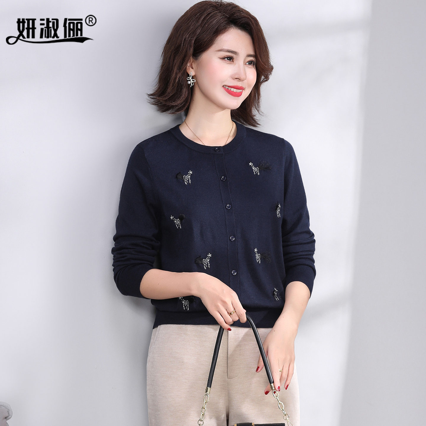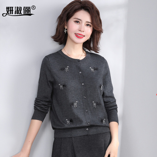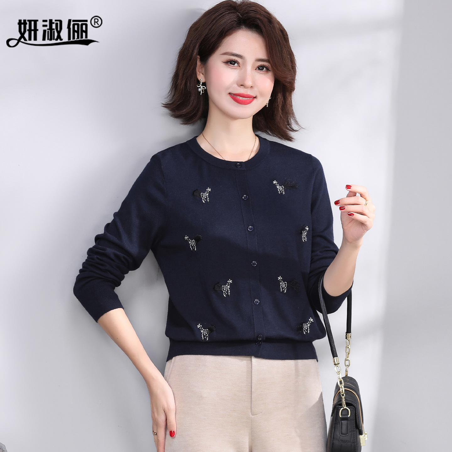 女40岁妈妈洋气宽松减龄毛衣 高级感刺绣羊毛针织开衫 2025秋季 新款