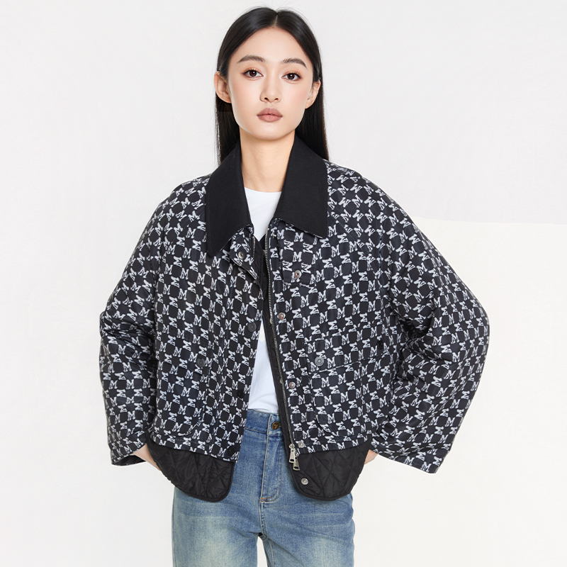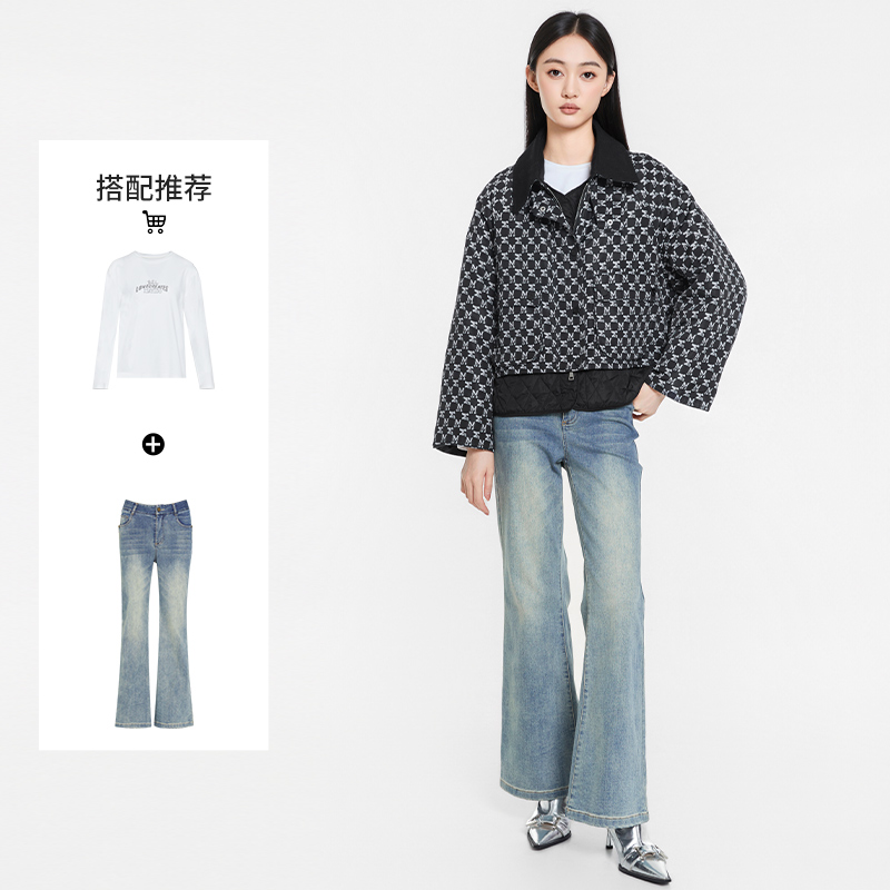 三福棉衣棉服女2025冬季 845249 撞色灯芯绒棉袄菱形格宽松外套女装