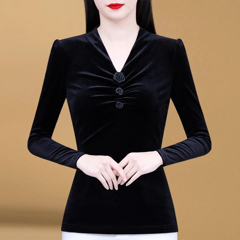 气质V领加绒打底长袖 2025新款 内搭显瘦上衣0920u 女冬季 洋气小衫