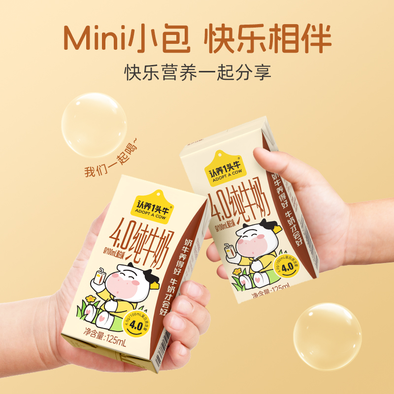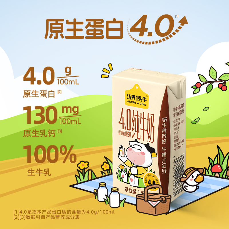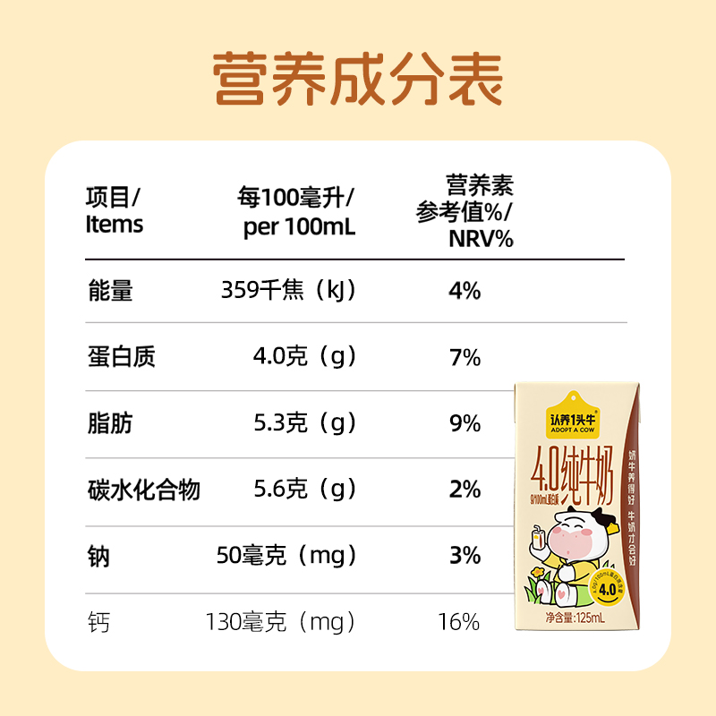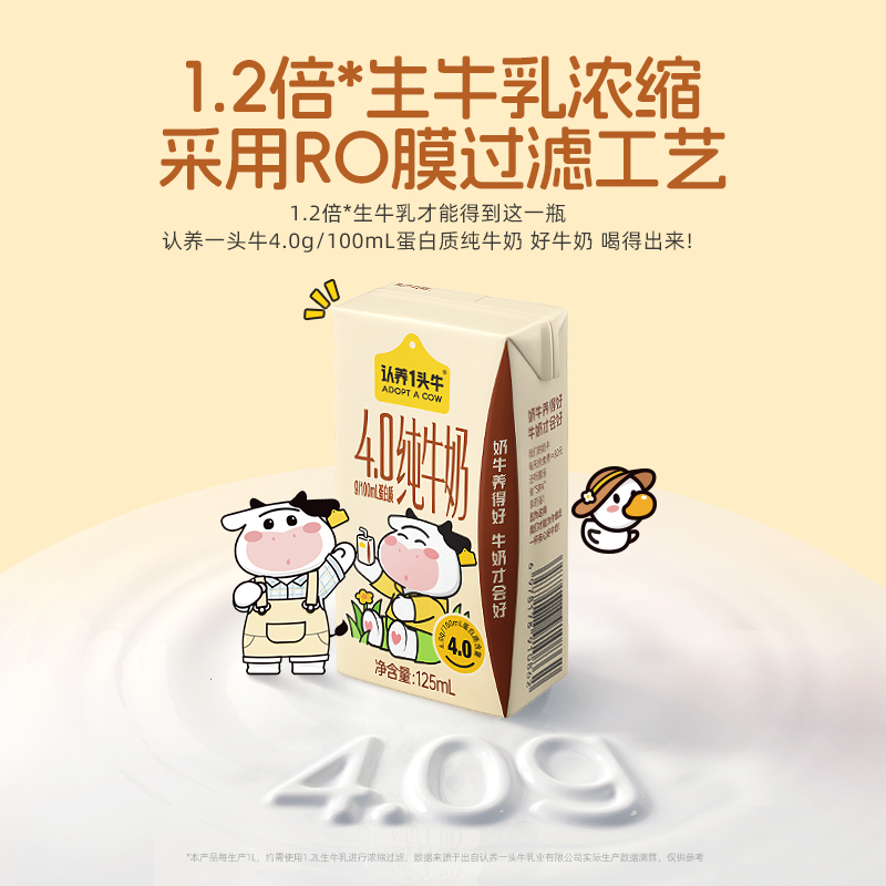 认养一头牛4.0g蛋白纯牛奶125ml 16盒学生营养早餐奶整箱优质蛋白