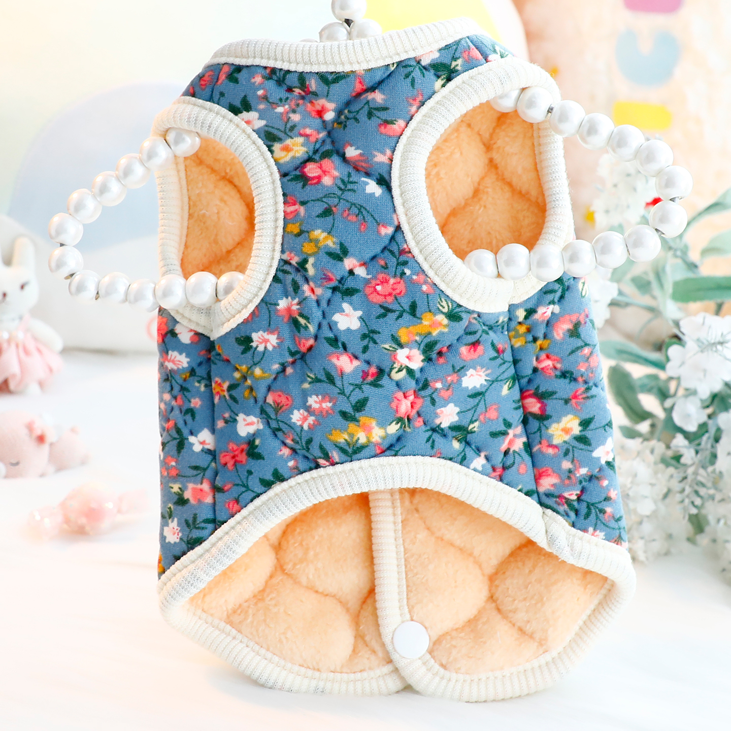 狗狗衣服秋冬装 猫公主棉背心碎花可爱牵引小型犬泰迪宠物7223 厚款
