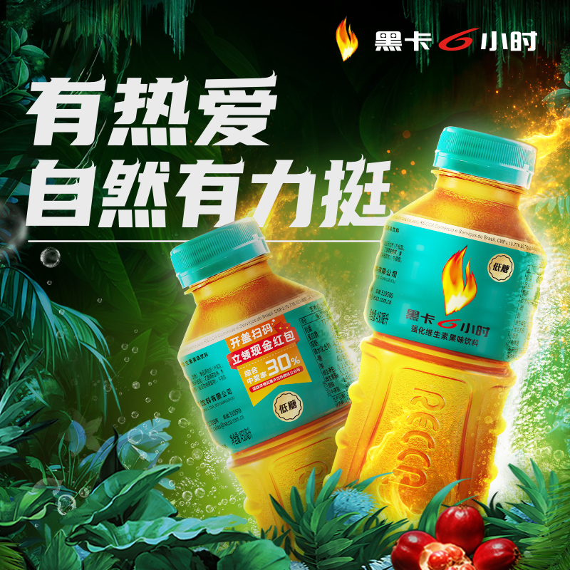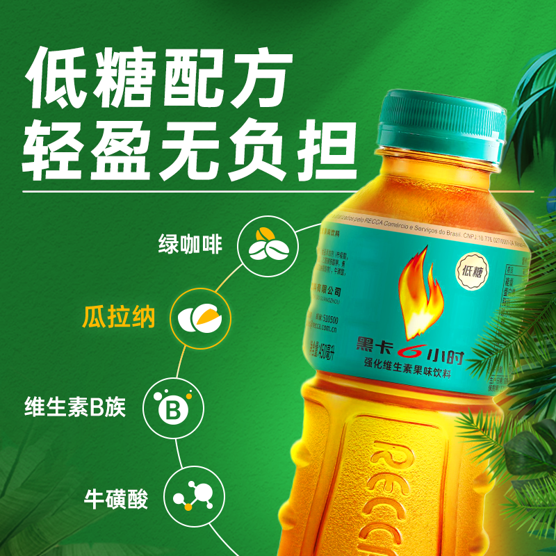 包邮 黑卡6小时饮料低糖RECCA强化维生素果味450ml 15瓶整箱运动