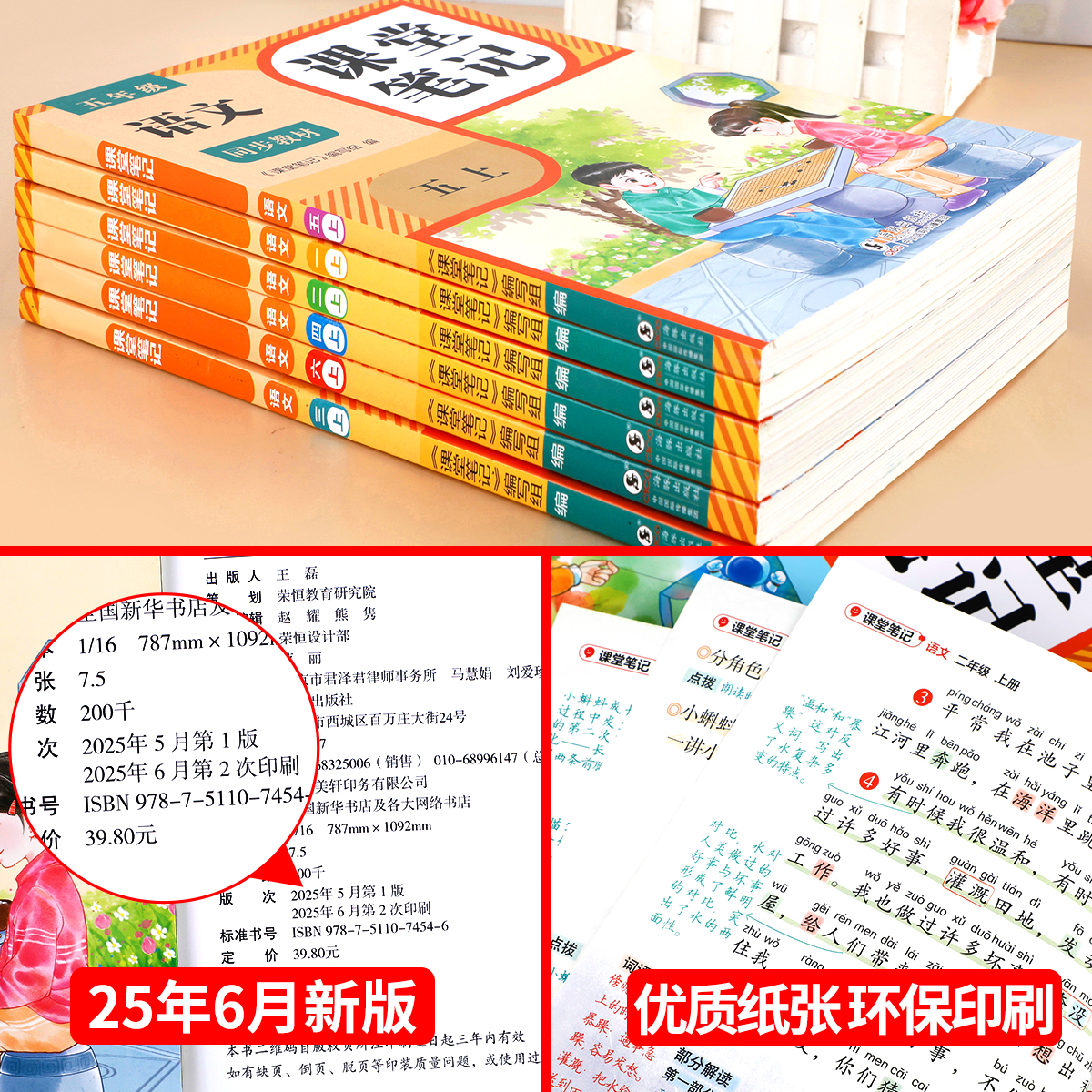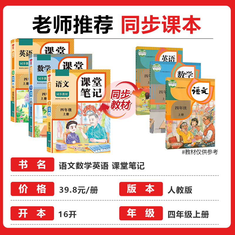 2025年新版 小学课本同步上册教材笔记4上随堂黄冈学霸本课前原文全讲解预习资料辅导书RJ 四年级上册课堂笔记语文数学英语人教版