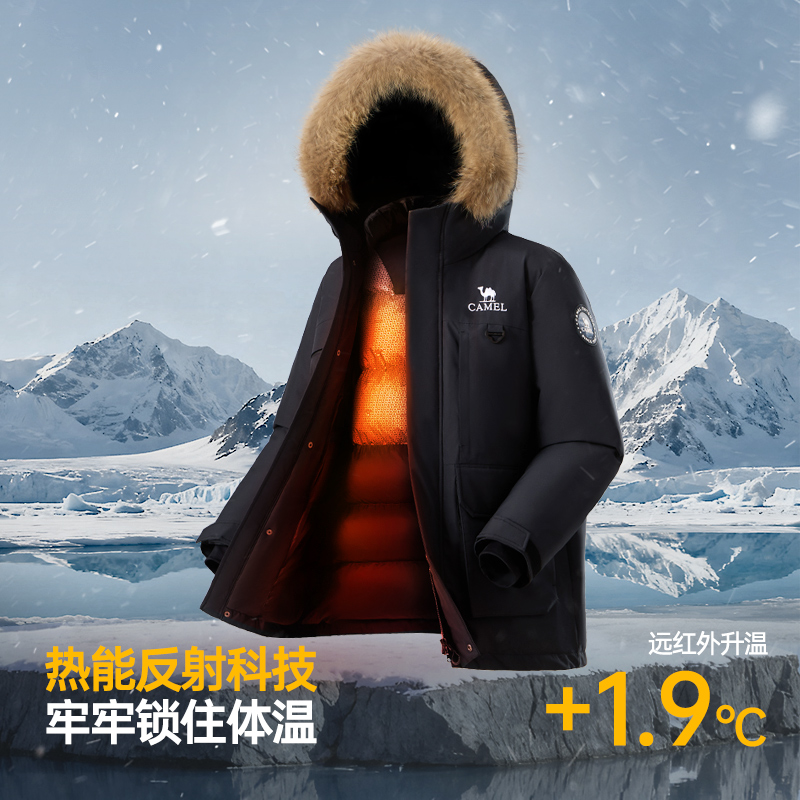 新款 2025冬季 鸭绒保暖棉服防寒加厚外套 运动羽绒服男士 安踏中长款