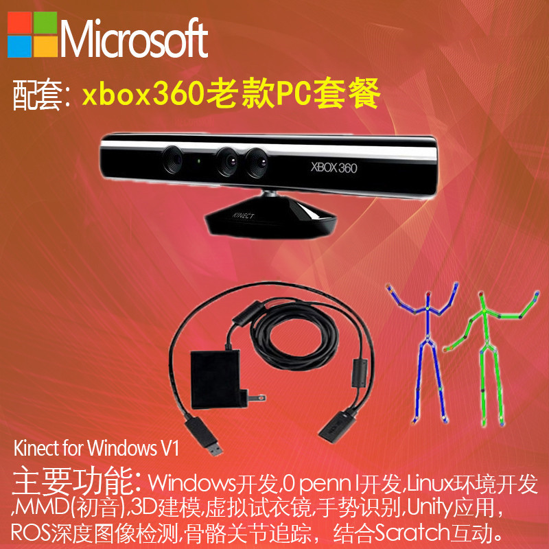 适配器 XBOX360体感器 PC开发 摄像头ROS kinect1.0 游戏机V1