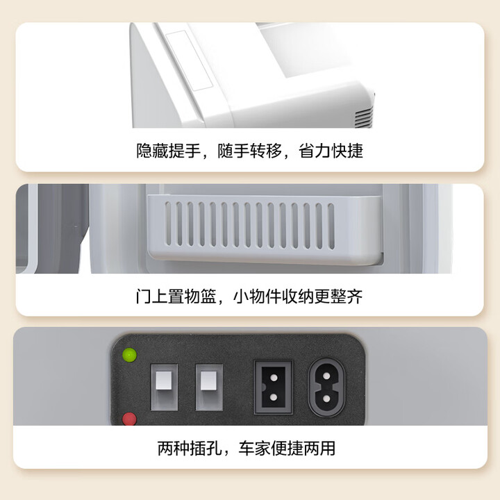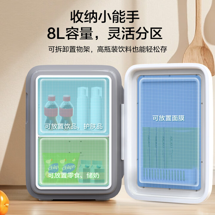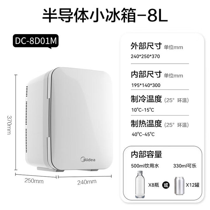 美 车载冰箱小型迷你冷暖箱加热保温车家两用租房宿舍塑料面板8L