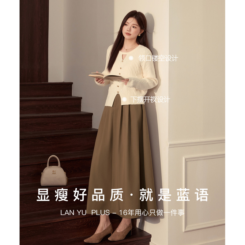 内搭针织上衣显瘦a字半身裙一整套春季 胖mm法式 穿搭 女装 蓝语大码