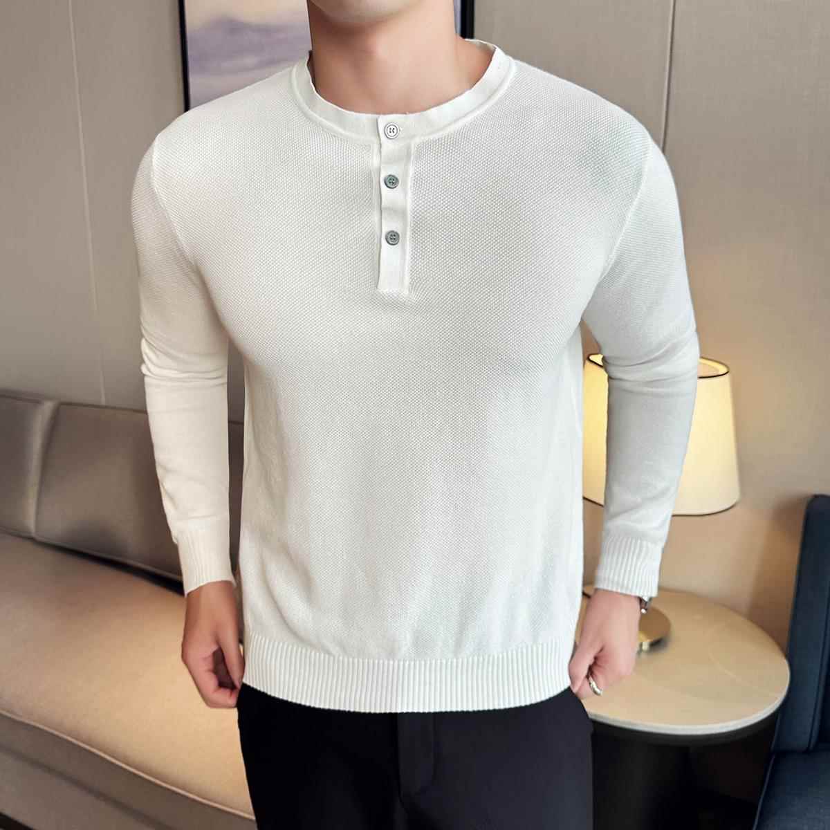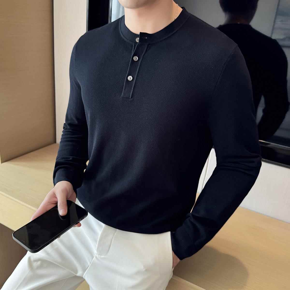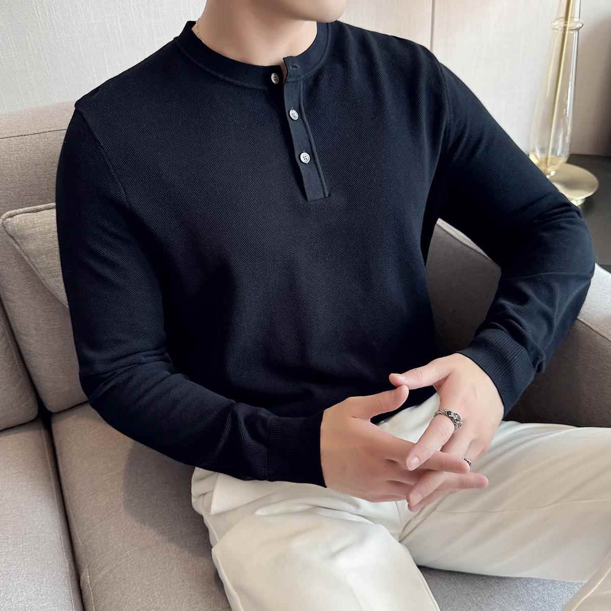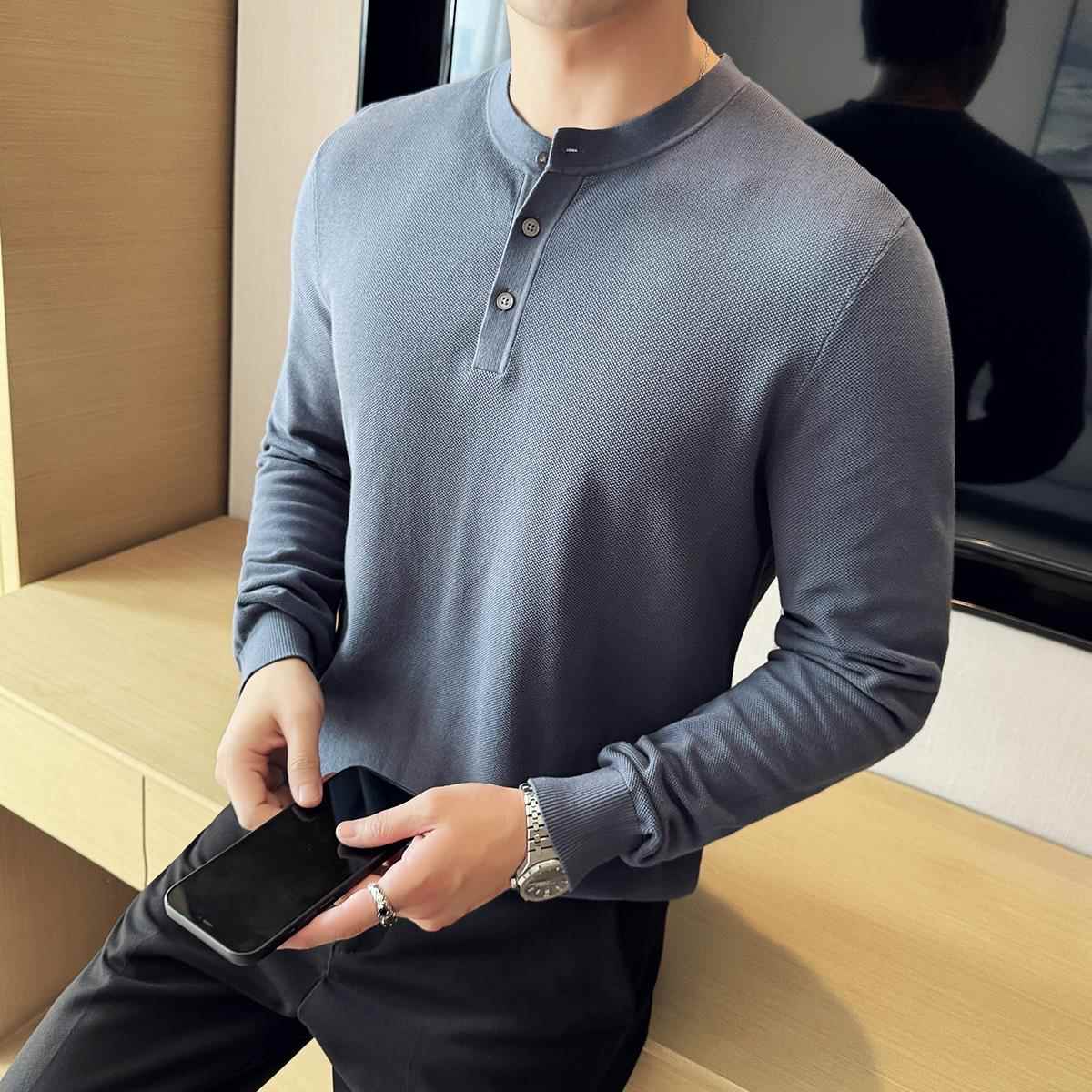 修身 新款 2025时尚 秋冬季 百搭色针织打0920z 亨利领纽扣毛衣男长袖