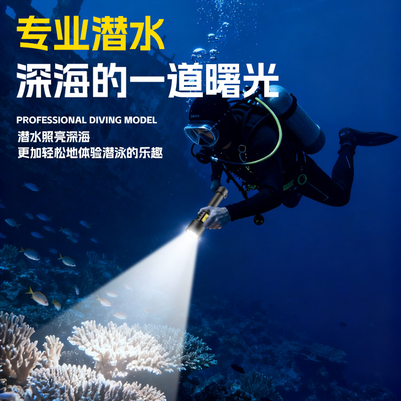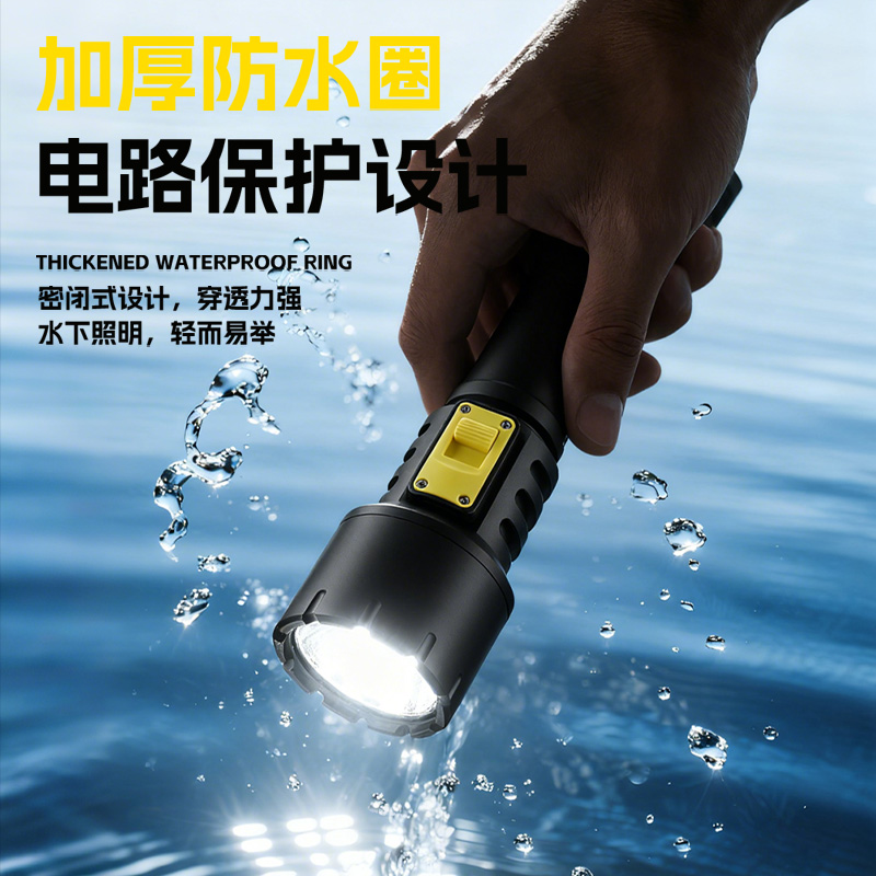 松美D31新品 强光潜水灯磁控开关USB充电数字显示大功率潜水手电筒