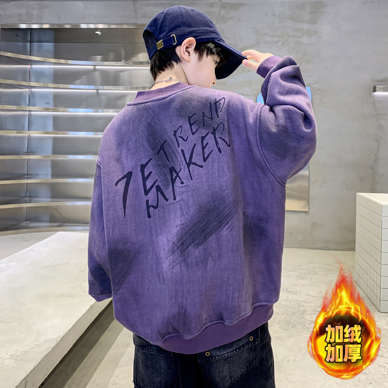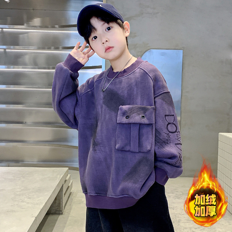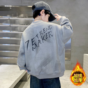 中大童男孩上衣秋冬款 儿童装 冬季 加绒卫衣2025新款 加厚潮 男童冬装