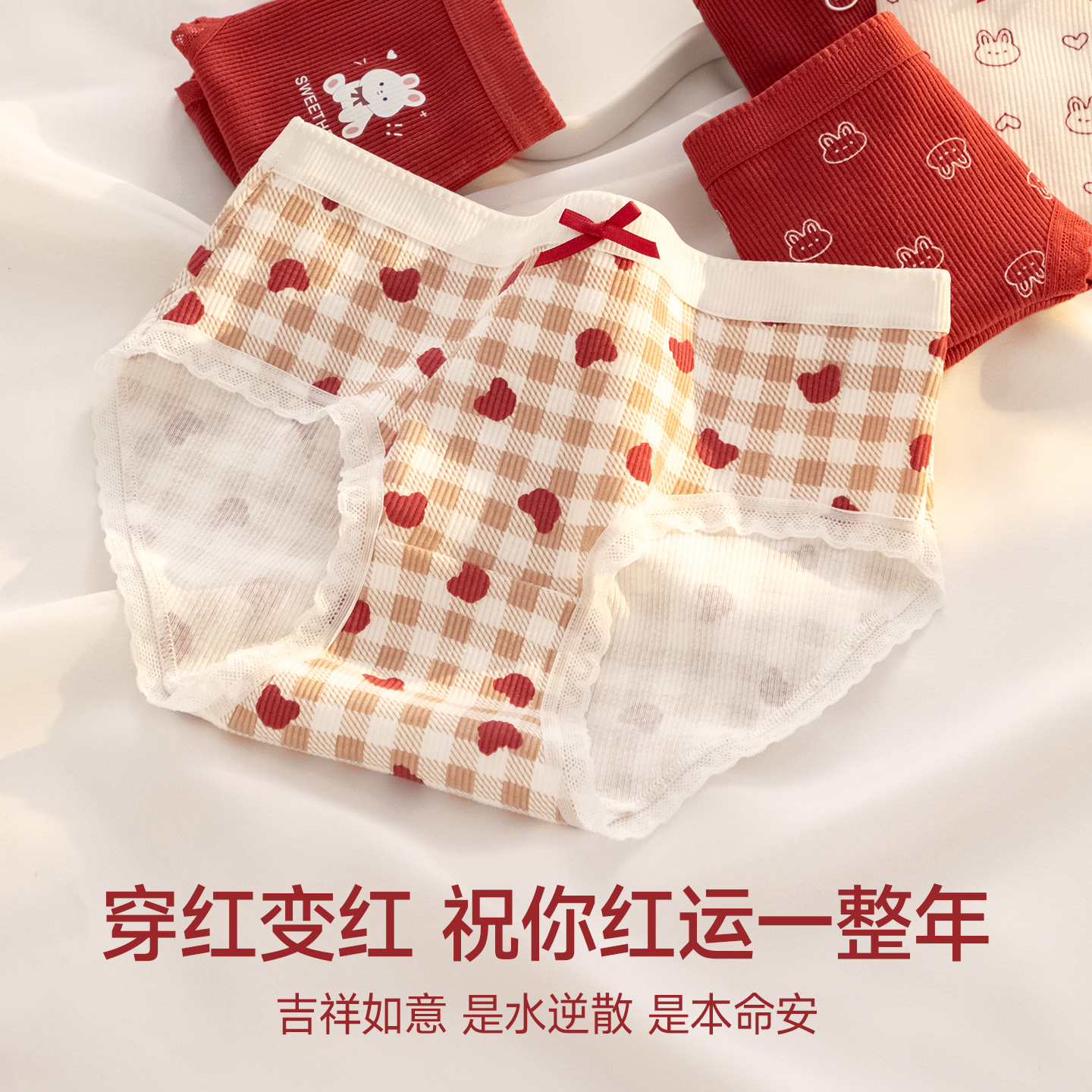 女童初中生少女生三角裤 芬腾本命年红色内裤 女士纯棉抗菌2025新款