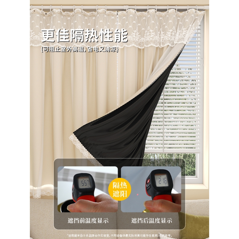新款 飘窗出租房隔断帘 全遮光窗帘遮阳隔热帘魔术贴免打孔安装