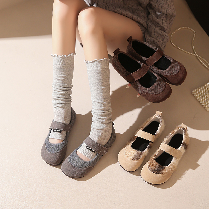 34码 复古玛丽珍勃肯鞋 魔术贴豆豆鞋 一脚蹬平底单鞋 女2025秋冬新款