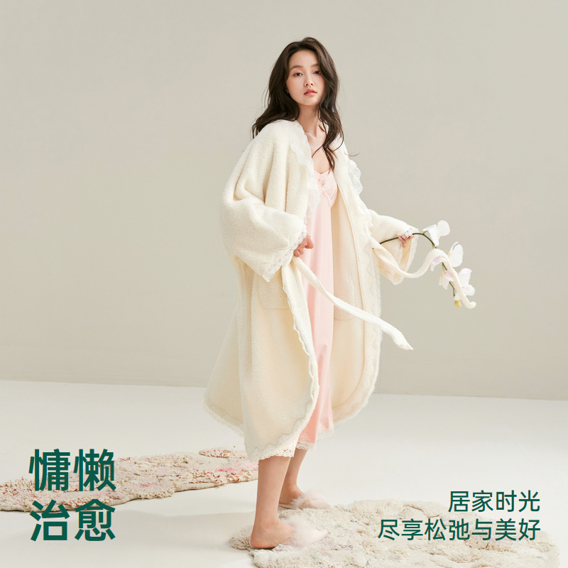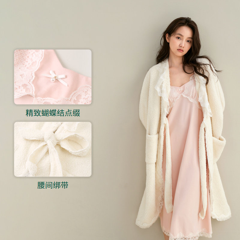 加厚睡衣秋冬季 珊瑚绒睡袍女冬款 睡裙浴袍两件套 巨保暖 安之伴