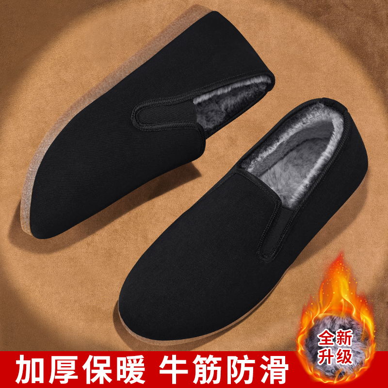 男款 厚一脚蹬棉鞋 官方正品 爸爸休闲男士 加绒千层底冬季 老北京布鞋