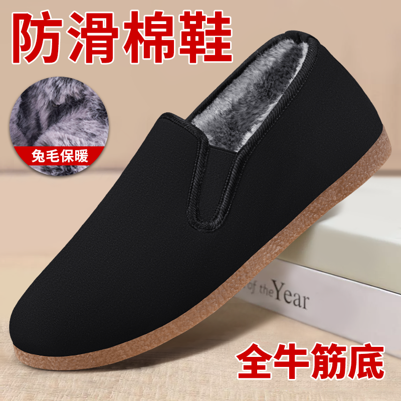 保暖棉鞋 秋冬正牌老北京布鞋 男防臭透气手工千层底一脚蹬黑色大码
