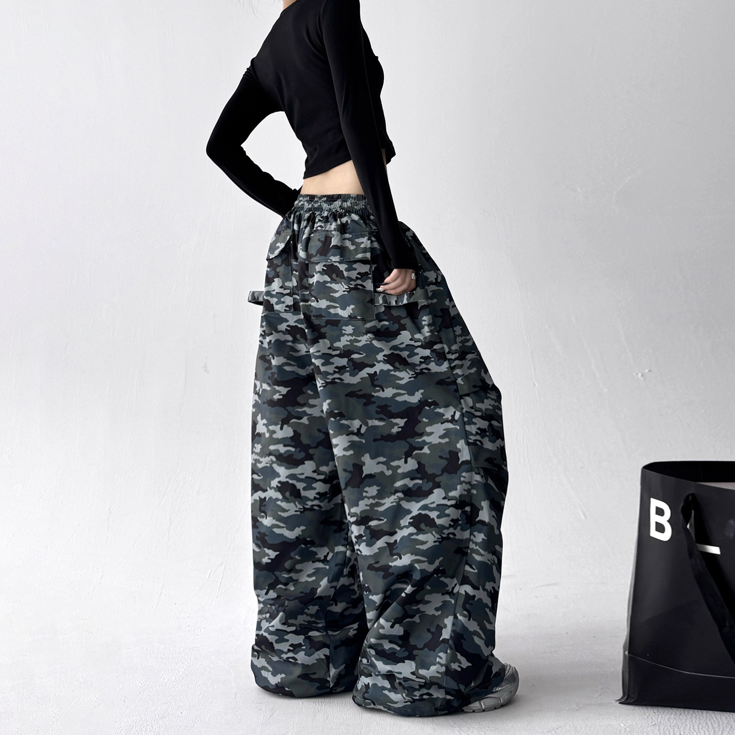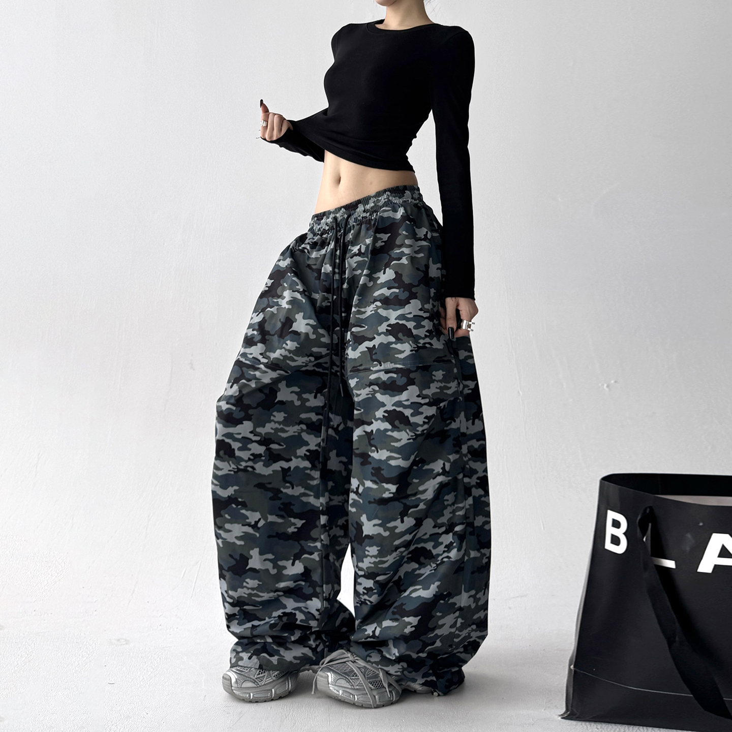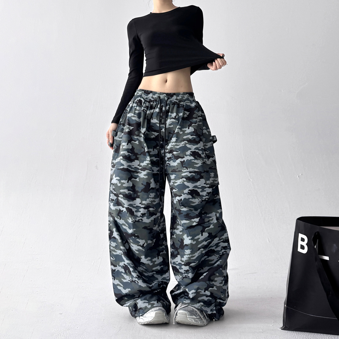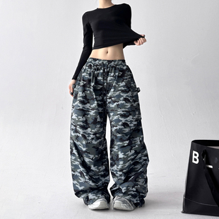 美式 小众宽松卫裤 复古迷彩工装 女运动休闲高腰阔腿裤 裤 2025秋季