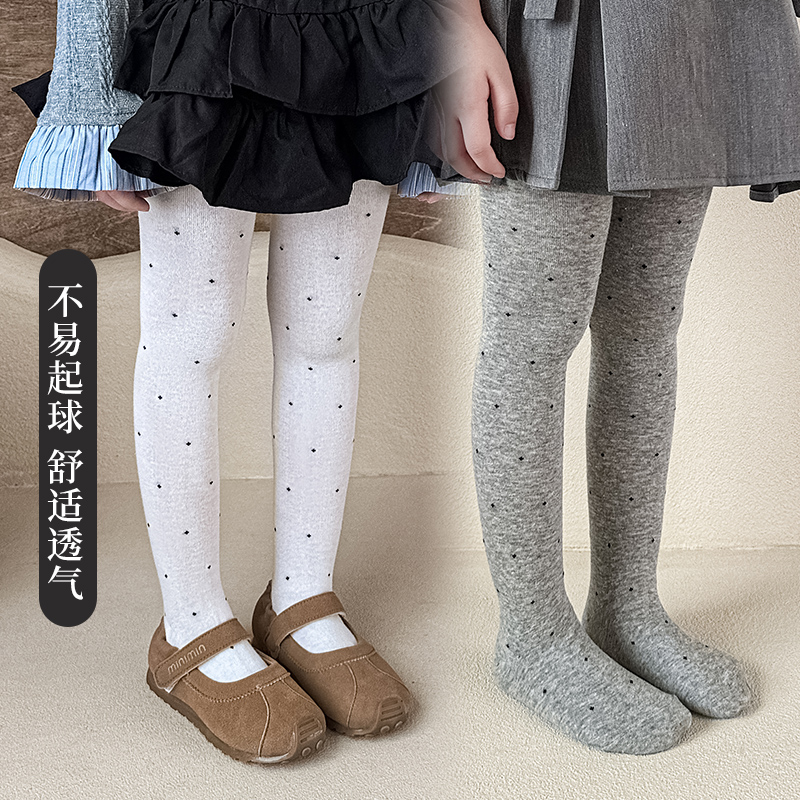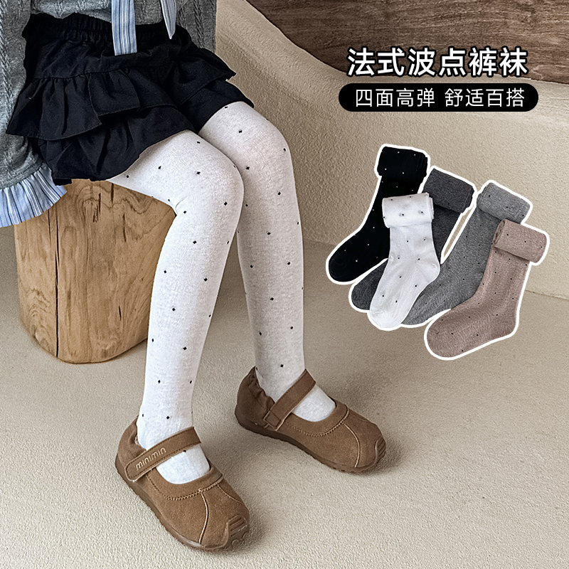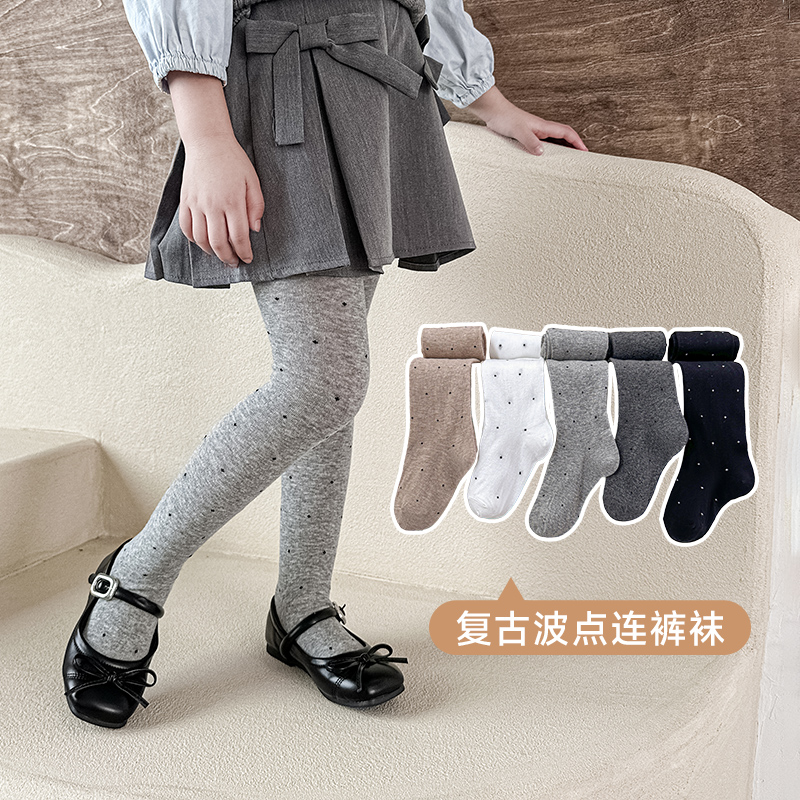 外穿 女童复古白色波点打底袜子洋气宝宝打底裤 儿童连裤 袜春秋薄款