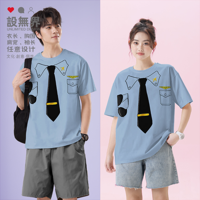 cos机长制服3D飞行员潮牌趣味涂鸦短袖 无界 T恤男女体恤夏0017设