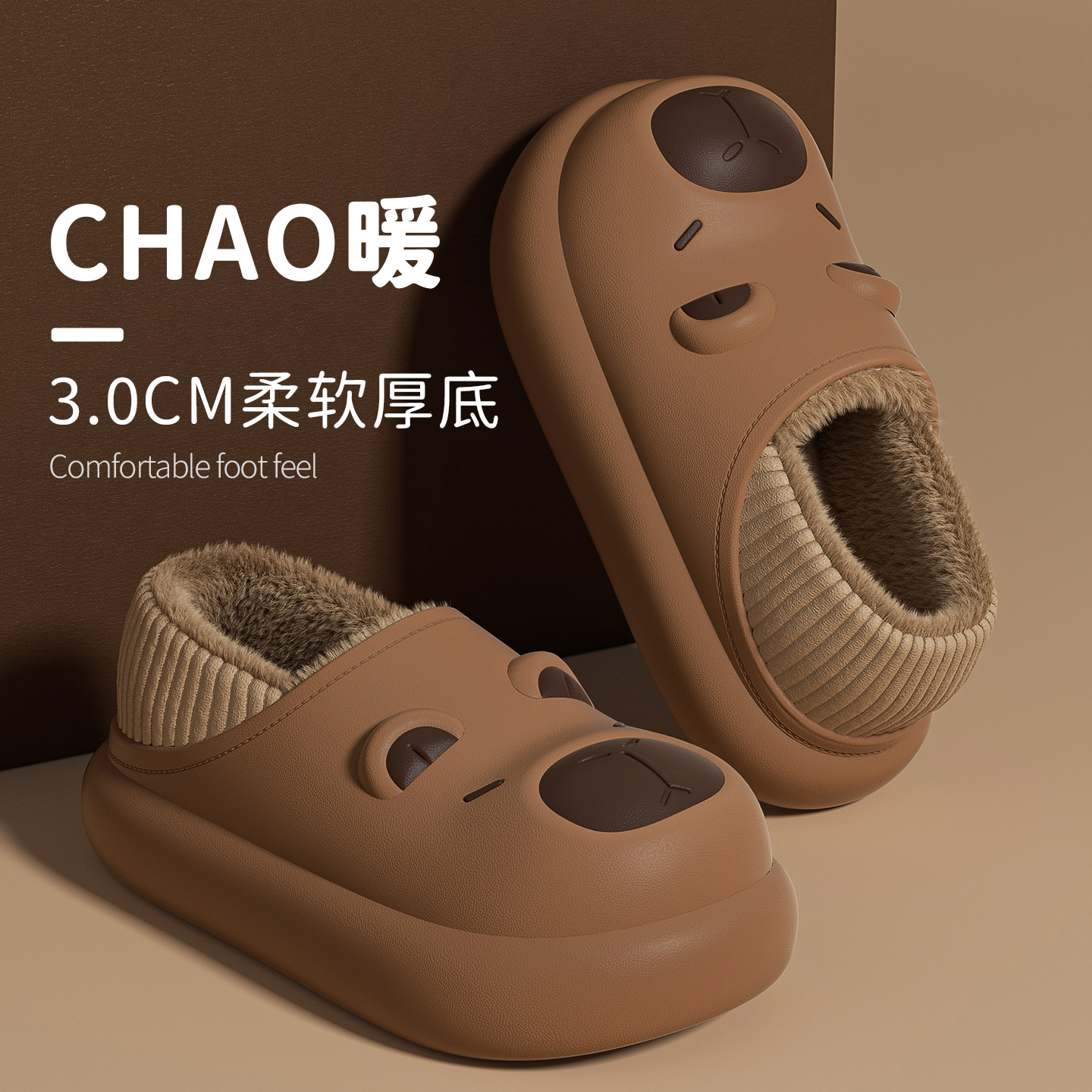 防滑防水室内宝宝包跟棉拖女 冬季 卡皮巴拉儿童棉拖鞋 男童2025新款