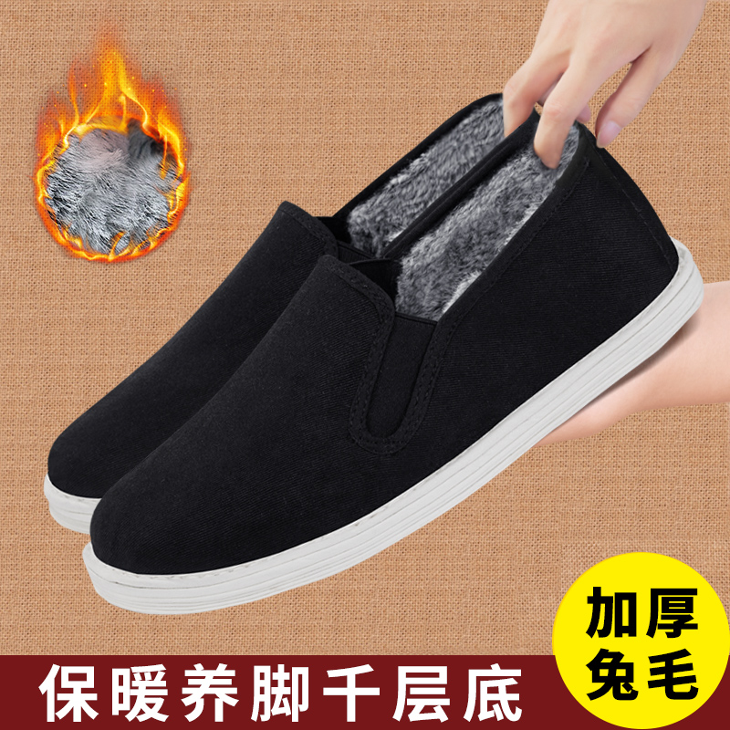 高帮包跟棉拖鞋 男女老人冬加绒保暖家用牛筋厚底防滑中年外穿棉鞋
