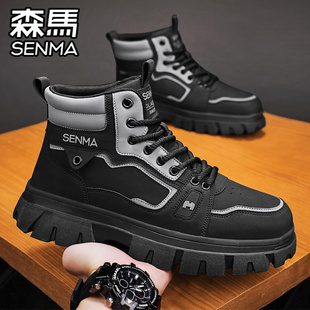 运动黑色马丁靴子 户外登山防滑耐磨上班工作男士 森马劳保男鞋 秋季