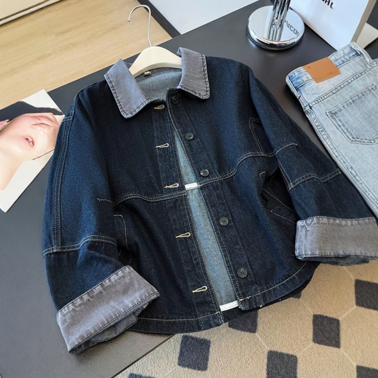 休闲夹克上衣 不褪色拼接牛仔外套女超好看设计感时尚 2025秋季 爆款