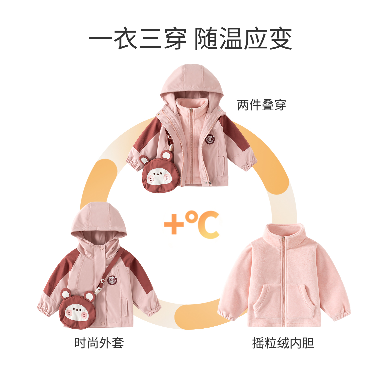 班喜迪女童外套春秋2025新款 宝宝三合一防风防水三防儿童衣服秋冬