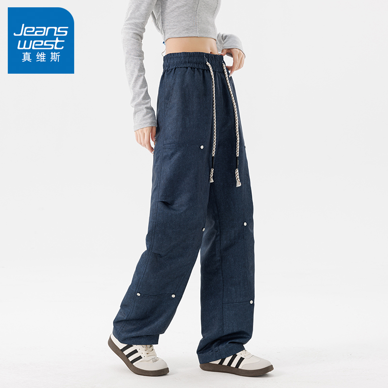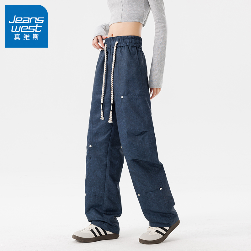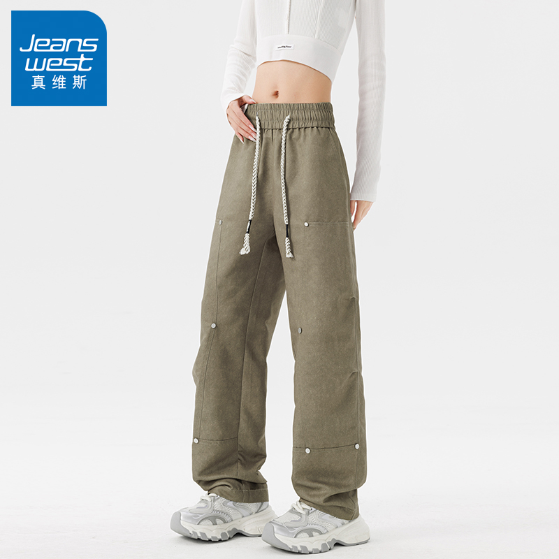 2025秋季 新款 运动拖地裤 垂感显瘦休闲裤 弯口袋糯米阔腿裤